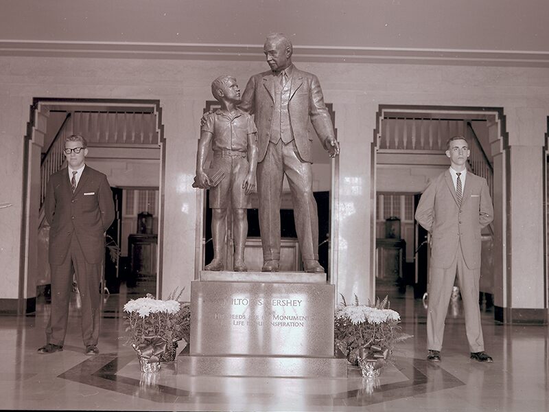 Eventually, the plans did come together, and over 1,000 alumni contributed to creating the statue we now know as Milton and the Boy. The statue itself was designed by famous sculptor Walker Hancock who had worked as one of the “Monuments Men” recovering art looted by Nazis during WWII. It was Hancock’s goal to convey appreciation, respect, and admiration in the simple pose of both the boy and Mr. Hershey.
