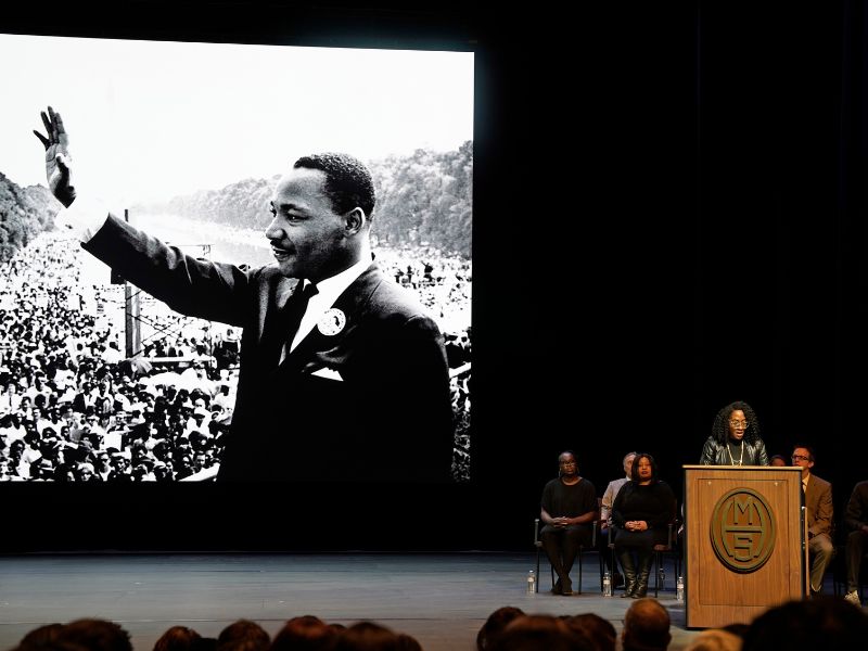 The blanket of snow around Founders Hall contrasted with the renewed warmth inside its auditorium as the Milton Hershey School community gathered to honor the life and legacy of Dr. Martin Luther King Jr. Through powerful words and moving Visual and Performing Arts presentations, attendees came for an assembly, but left with a challenge: to see Dr. King not merely as a historical figure, but as someone whose story is still being told through each of us.