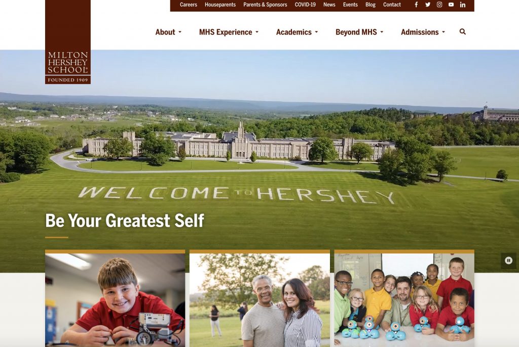 On January 27, 2020, Milton Hershey School launched a new and improved website, mhskids.org. The upgraded platform includes bright, beautiful photos and videos of our students and our campus. Plus, it offers cleaner navigation with better structure and order—so visitors can easily find information.