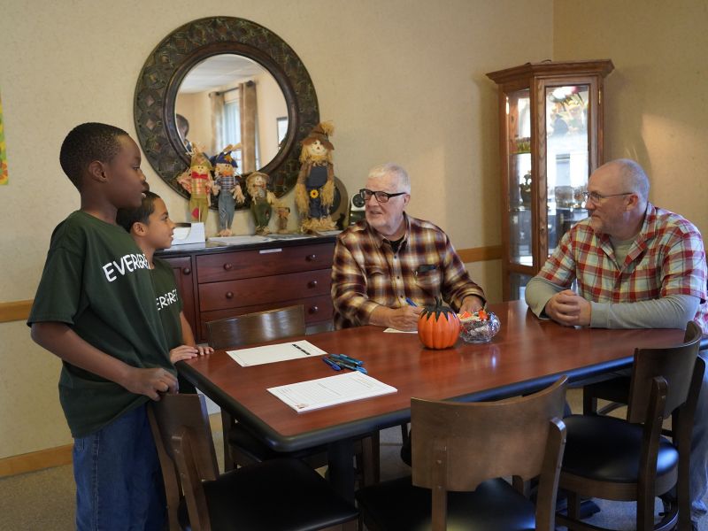 On Saturday, Oct. 26, the Elementary Division students and houseparents of student home Evergreen warmly welcomed Milton Hershey School alumni to their student home. They were invited to step back in time and reminisce in the spaces where today’s students create memories—just as they once did. Each alumnus passed through a brown and gold balloon arch as they entered the student home, a celebratory gesture to honor their return and symbolize the beautiful bridging of past and present that this special event was designed to host.