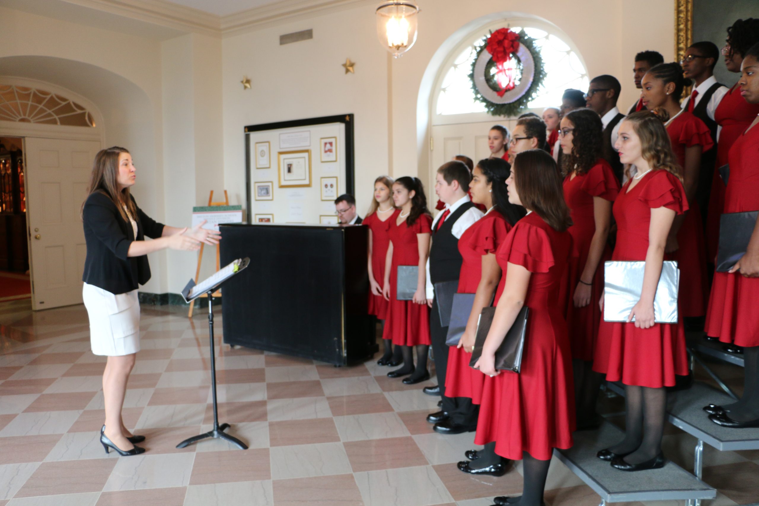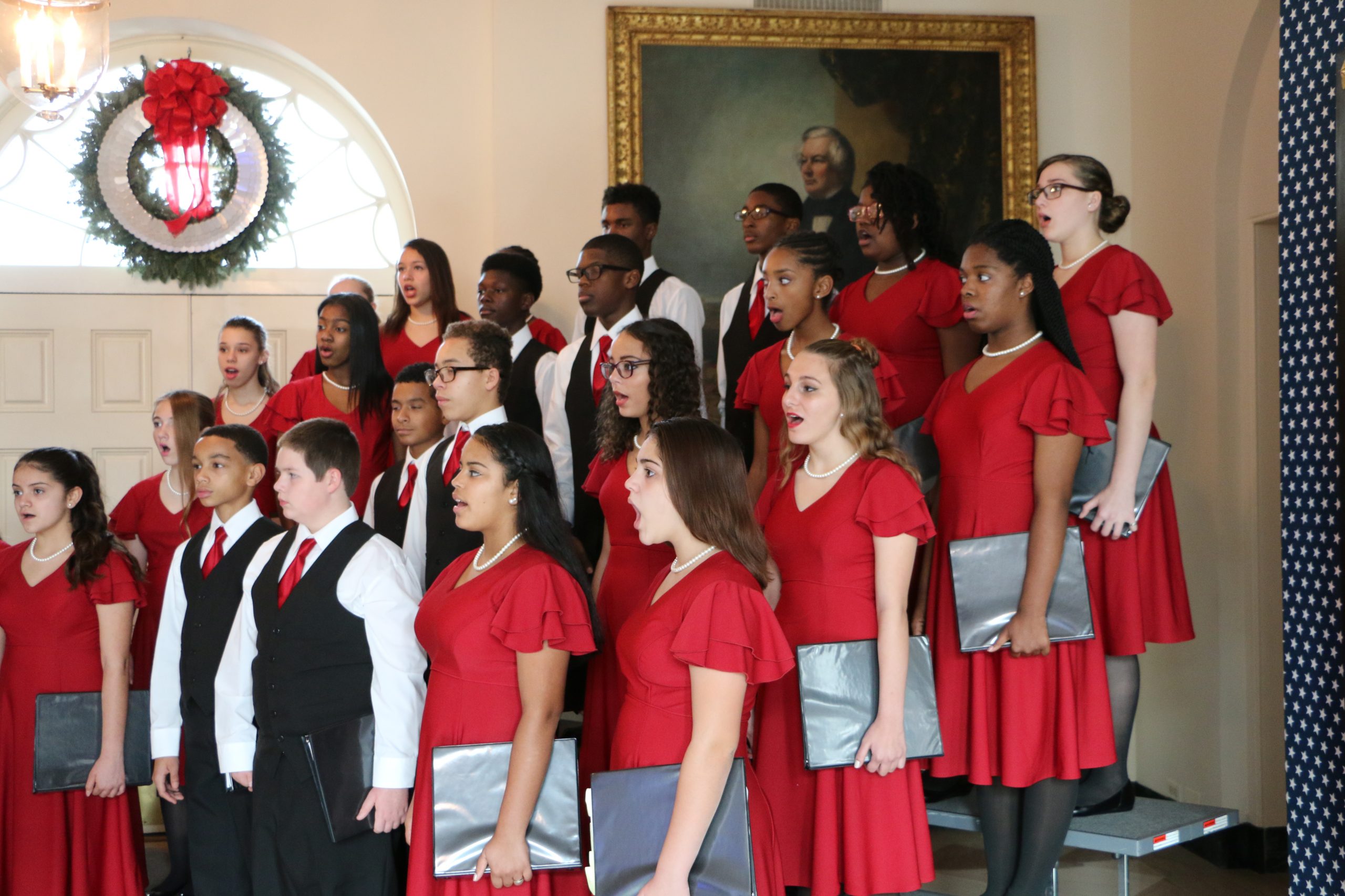 On Monday, Dec. 12, a group of 24 Milton Hershey School® students performed at one of the annual Christmas receptions at The White House. The Middle Division students greeted guests with festive holiday tunes as they entered the celebratory event.
